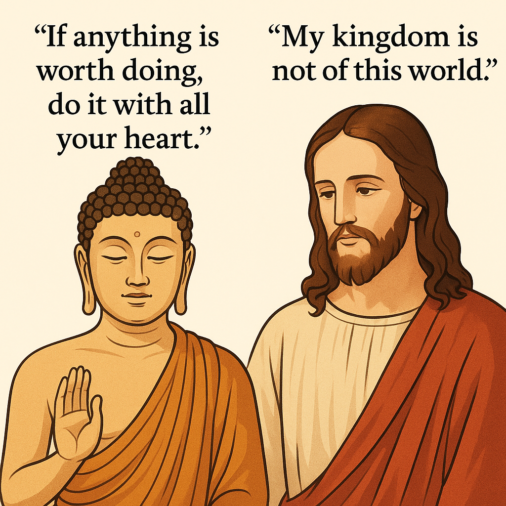 | 중심 가치 | 사랑(Agapē), 용서, 회개, 은총 | 연민(Karuṇā), 계(sīla), 알아차림(sati), 지혜(paññā) |